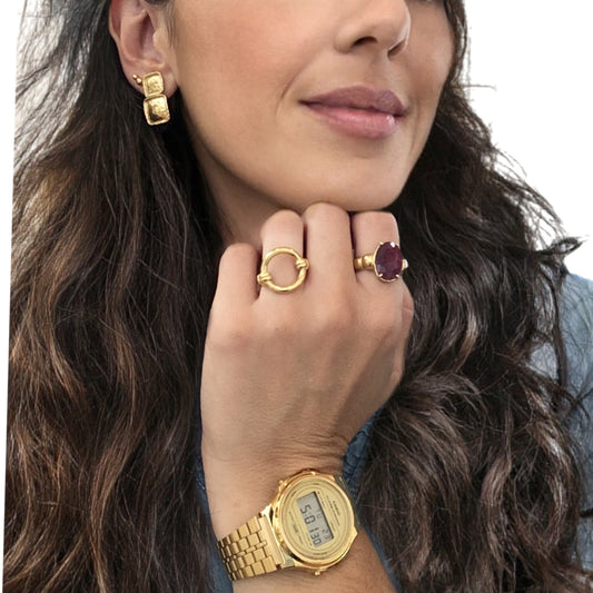 EsgotadoAnel Prata Dourada EUGÉNIO CAMPOS