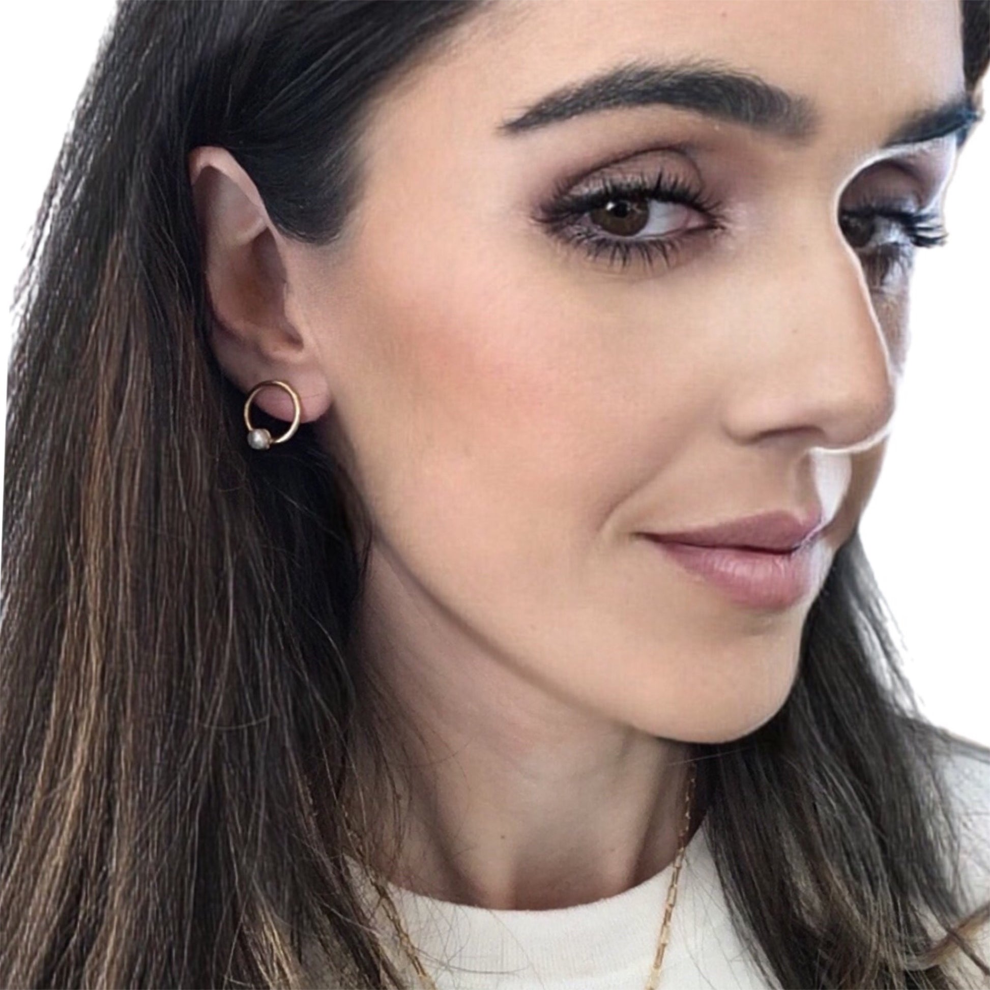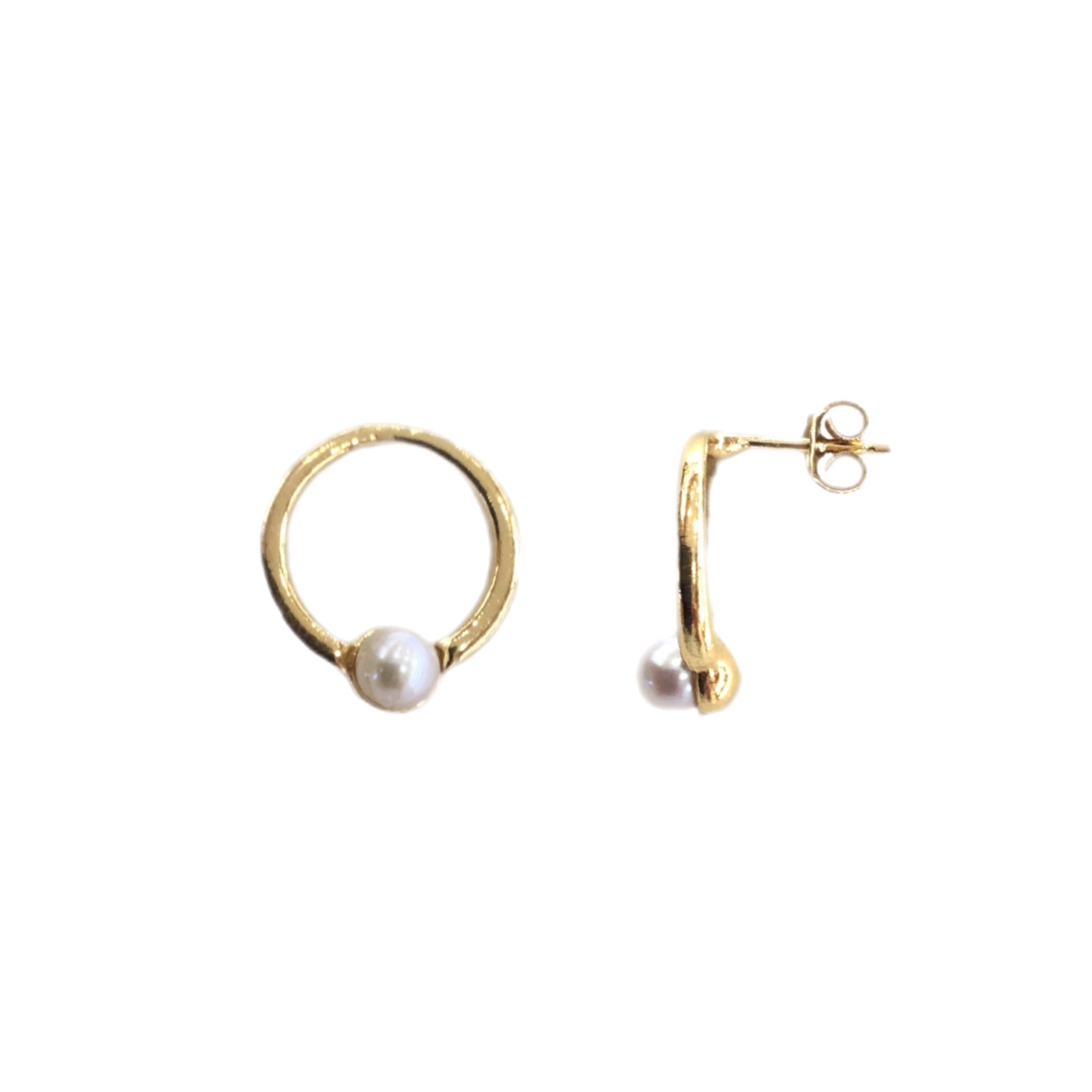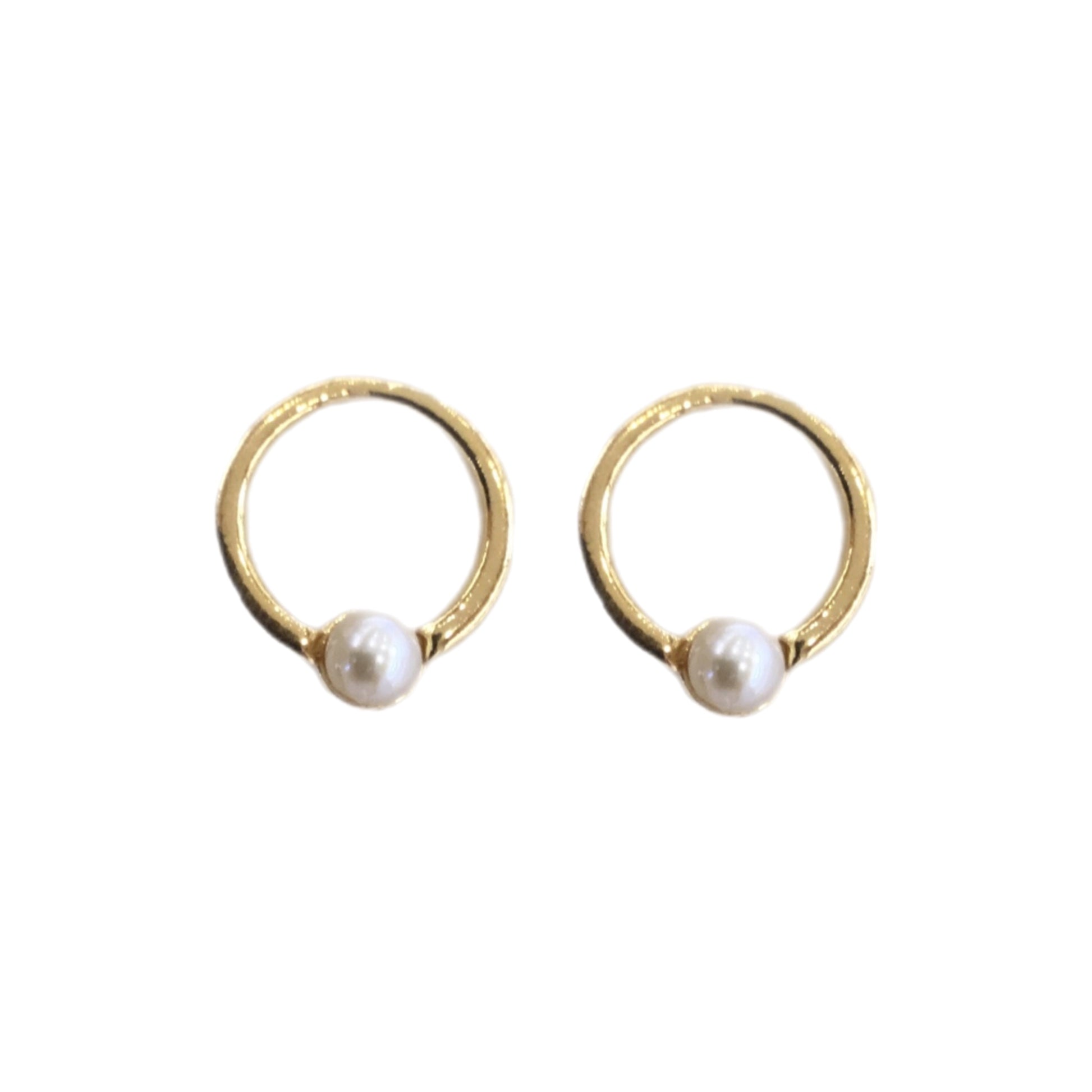 Brincos em Prata Dourada circular comPérola