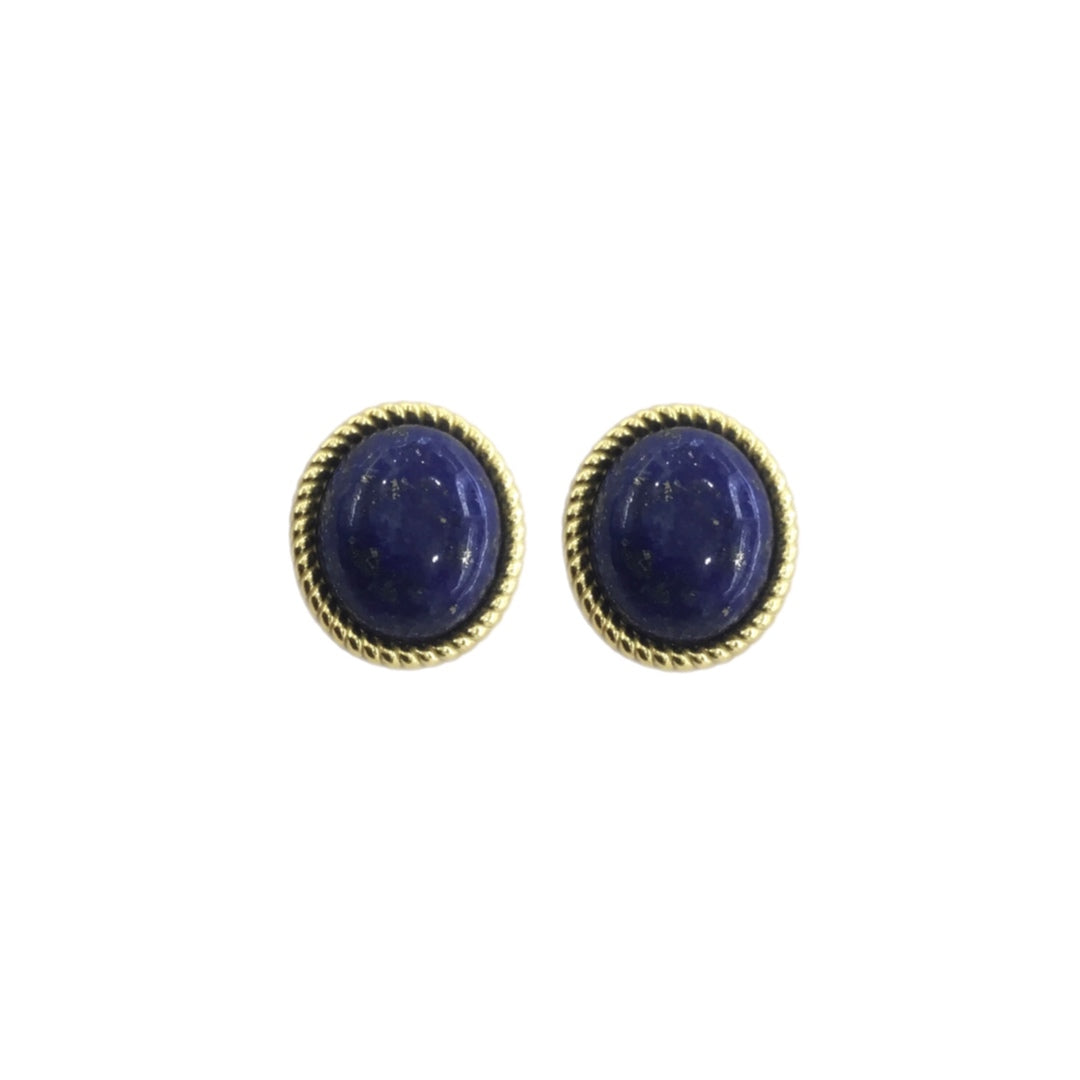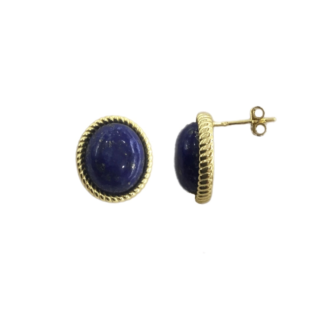 Brincos Prata Dourada com Lapiz Lazuli Oval