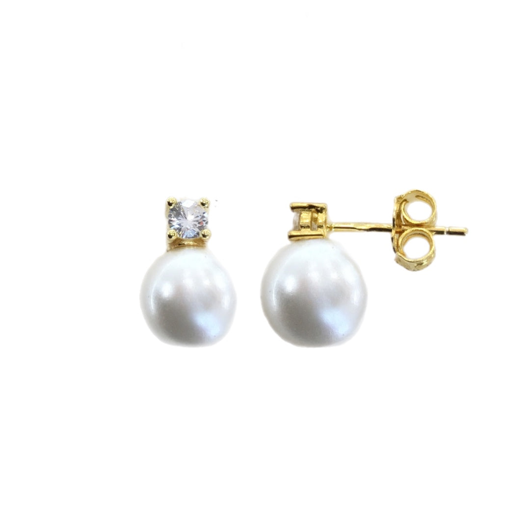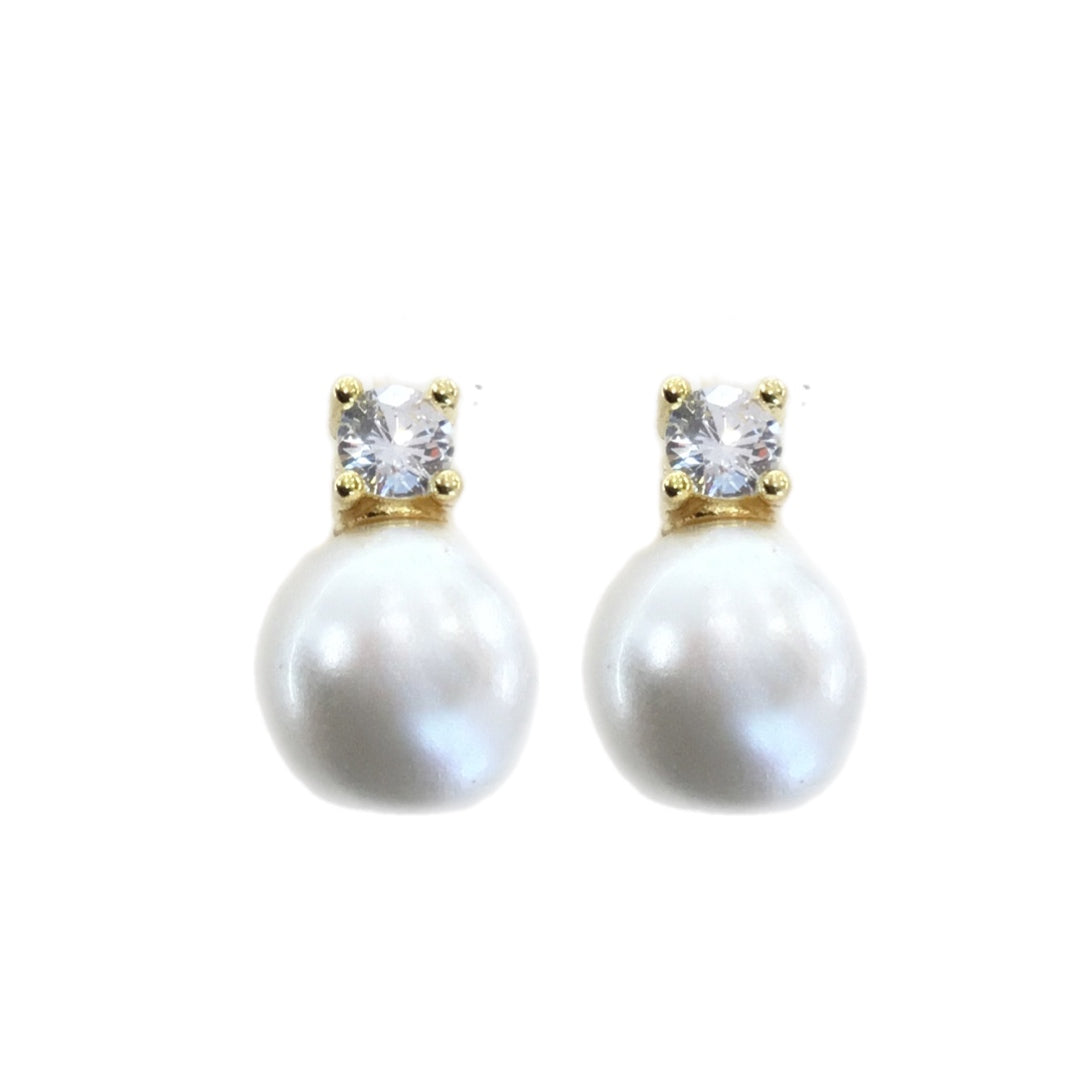 Brincos Prata Dourada com Zircónia e Pérola