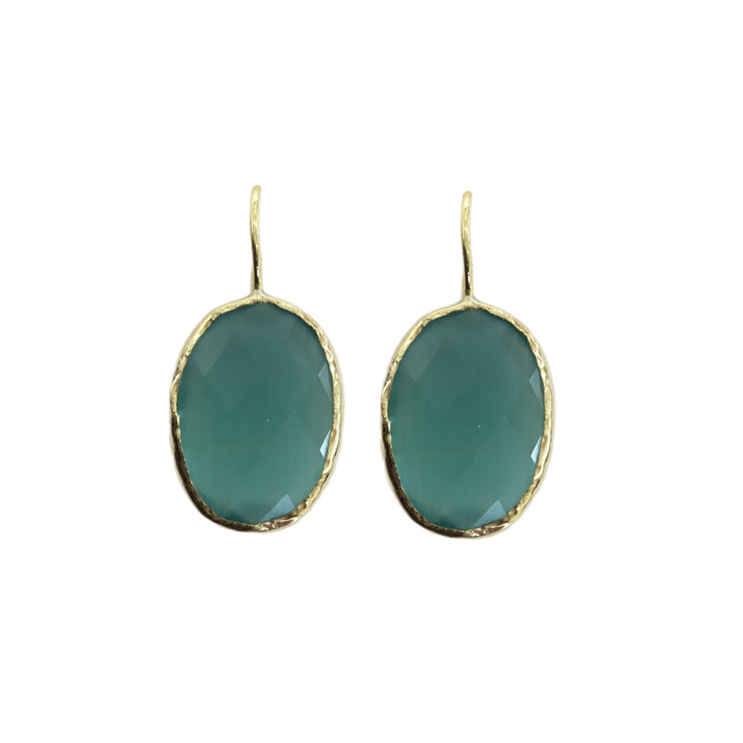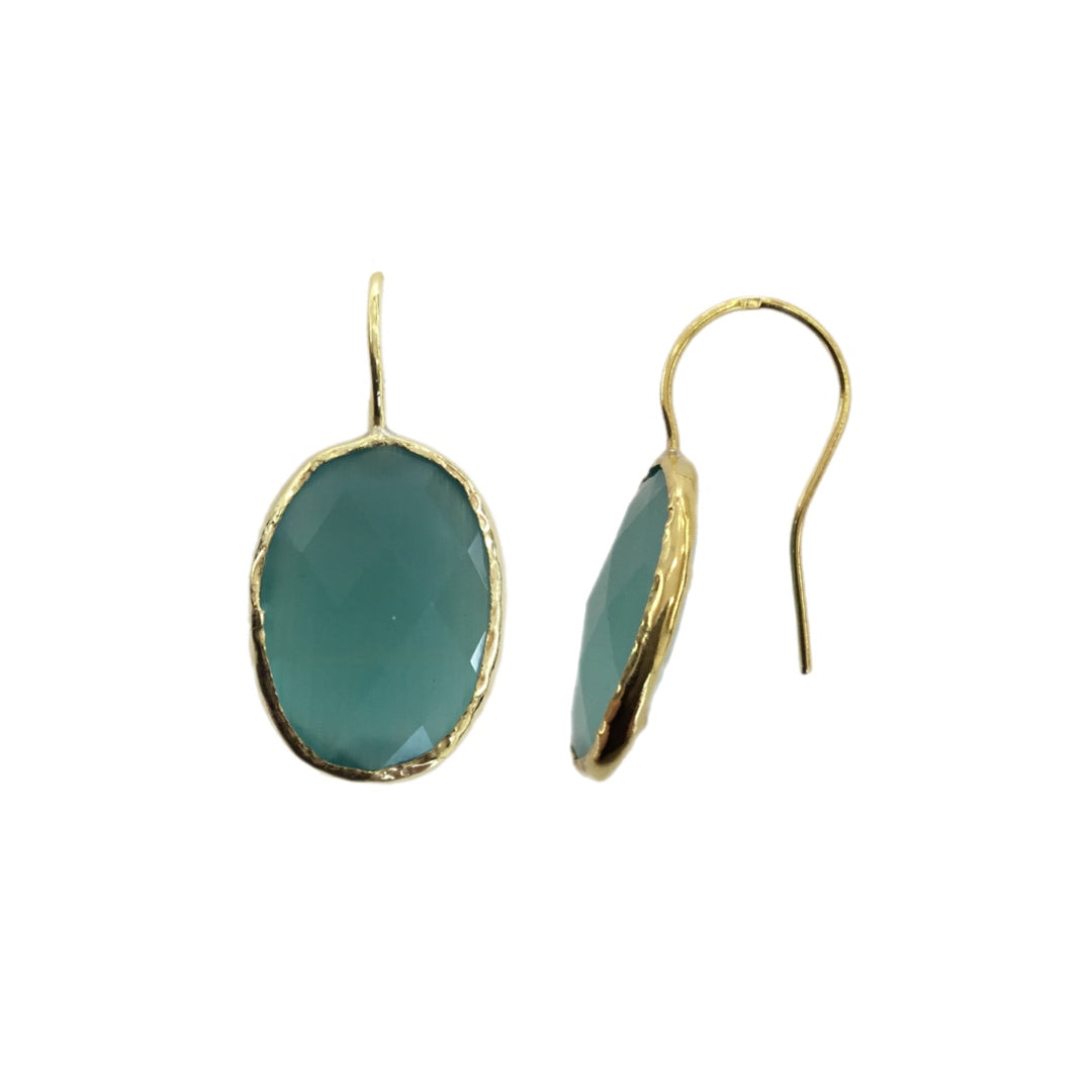 Brincos em Prata Dourada com Pedra Hidrotermal Verde