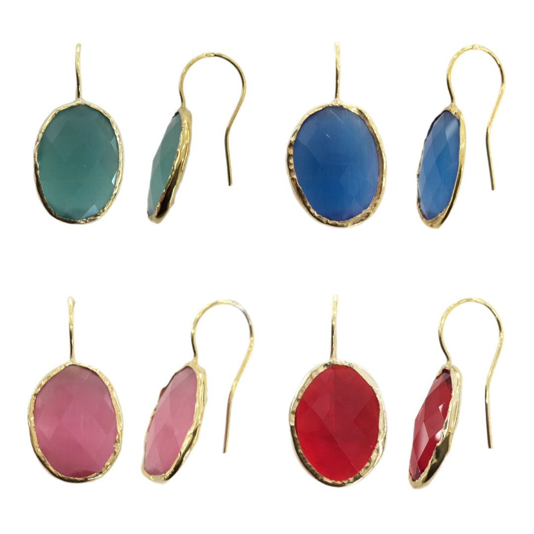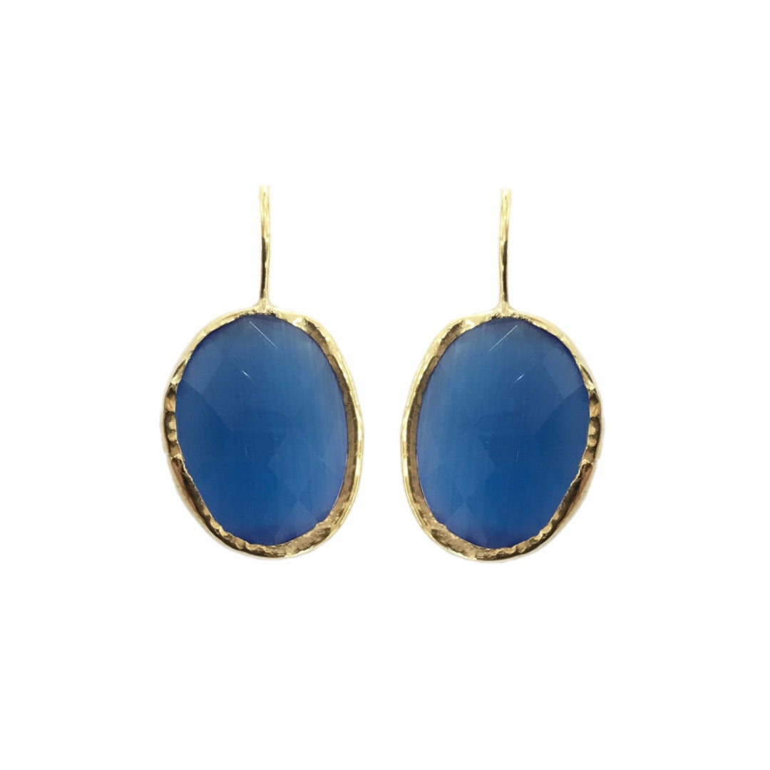 Brincos em Prata Dourada com Pedra Hidrotermal Azul