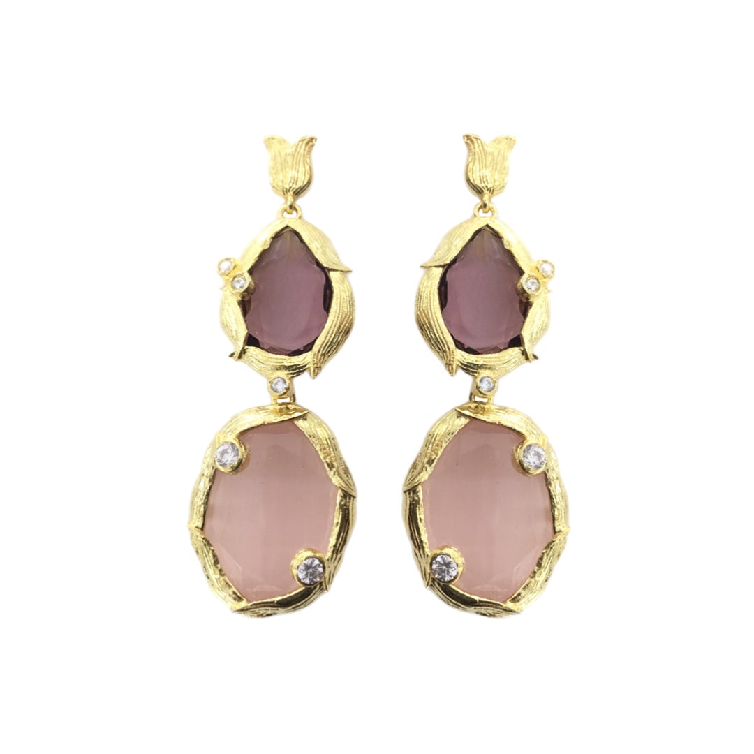 Brincos em Prata Dourada com Pedra Hidrotermal Dois tons de Rosa