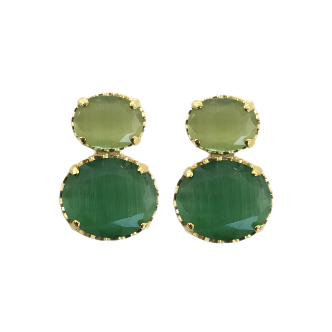 Brincos em Prata Dourada duplo com Pedra Hidrotermal Verde