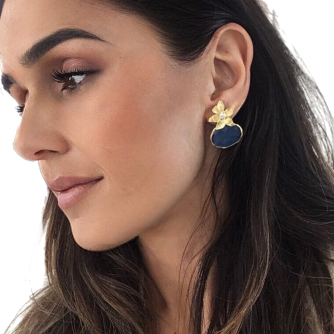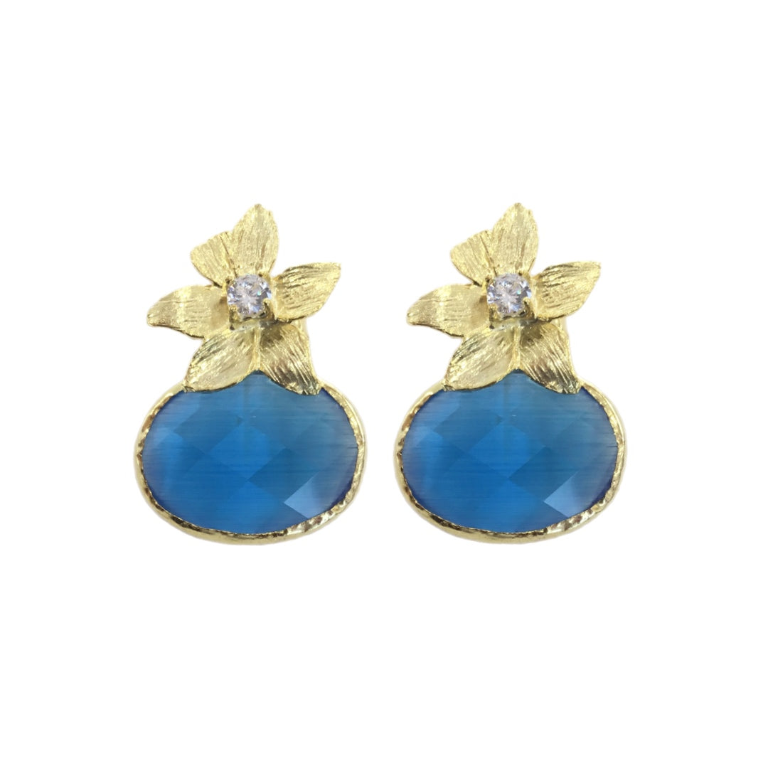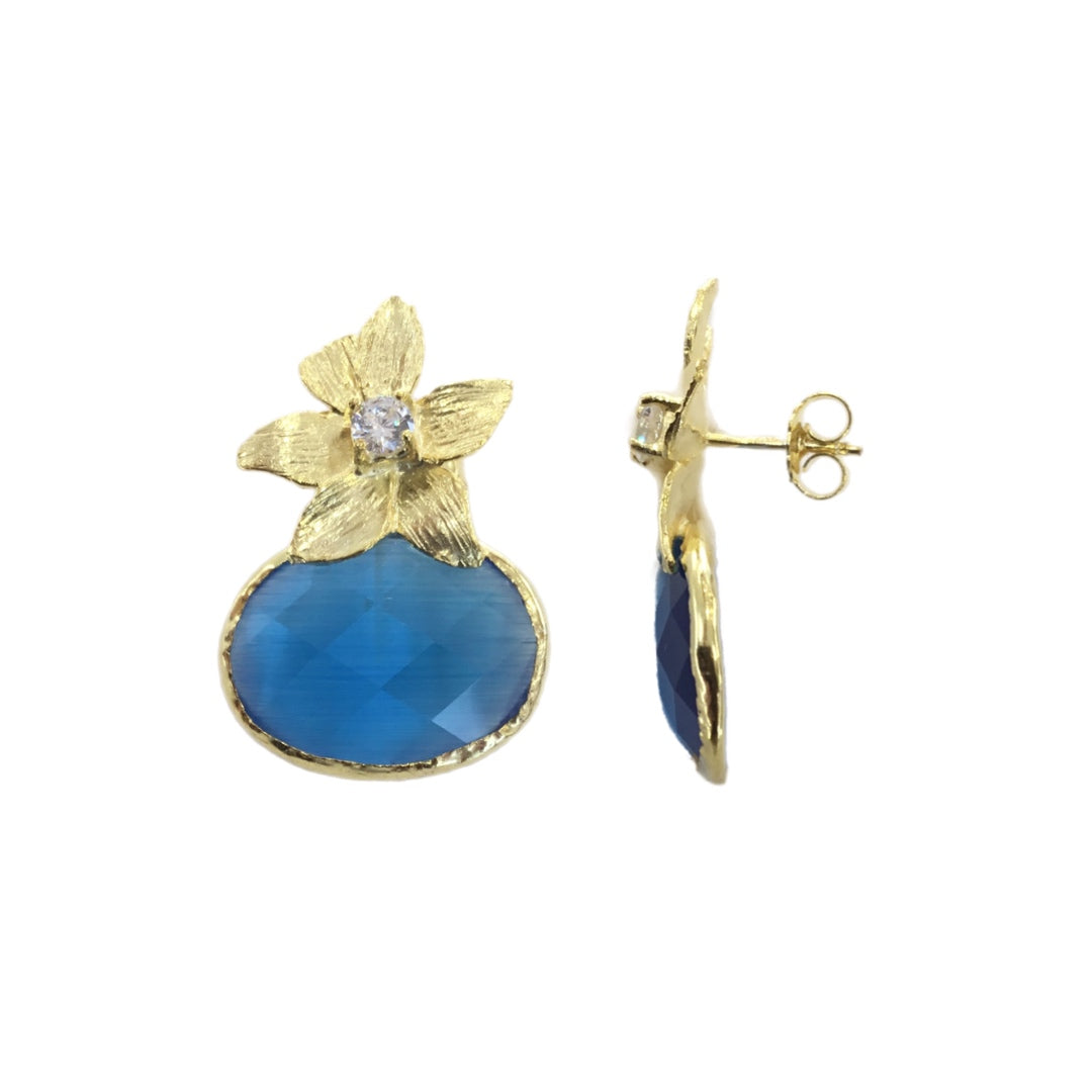 Brincos em Prata Dourada com Pedra Hidrotermal Azul