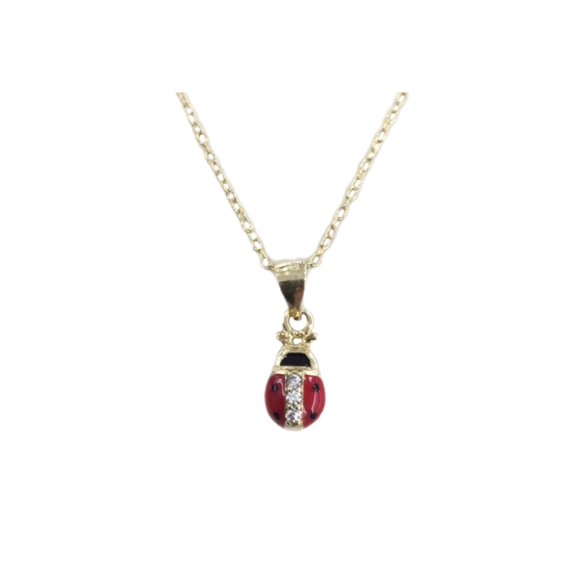 Colar Prata Dourada com Joaninha Esmaltada