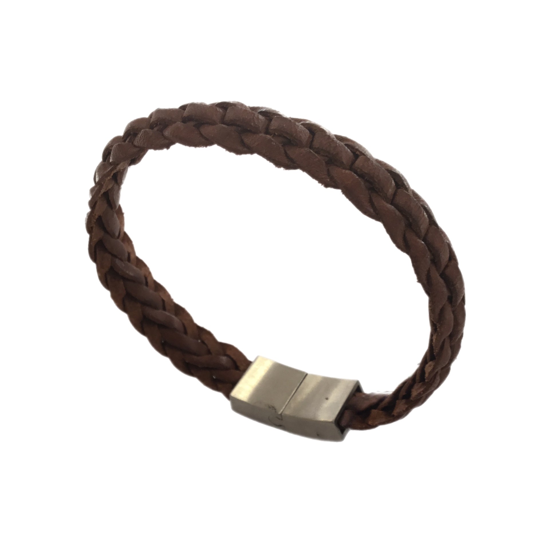 Pulseira em aço inoxidável e Couro Castanho Entrançado